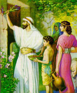 12:21Then Moses called for all the elders of Israel, and said unto them, Draw out, and take you lambs according to your families, and kill the passover. 12:22And ye shall take a bunch of hyssop, and dip it in the blood that is in the basin, and strike the lintel and the two side-posts with the blood that is in the basin; and none of you shall go out of the door of his house until the morning. 12:23For Jehovah will pass through to smite the Egyptians; and when he seeth the blood upon the lintel, and on the two side-posts, Jehovah will pass over the door, and will not suffer the destroyer to come in unto your houses to smite you. 12:24And ye shall observe this thing for an ordinance to thee and to thy sons for ever. 12:25And it shall come to pass, when ye are come to the land which Jehovah will give you, according as he hath promised, that ye shall keep this service. 12:26And it shall come to pass, when your children shall say unto you, What mean ye by this service? 12:27that ye shall say, It is the sacrifice of Jehovah's passover, who passed over the houses of the children of Israel in Egypt, when he smote the Egyptians, and delivered our houses. And the people bowed the head and worshipped. 12:28And the children of Israel went and did so; as Jehovah had commanded Moses and Aaron, so did they.