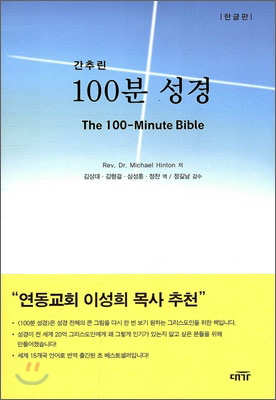 ![]() ● 간추린 100분 성경 (한글판) MICHAEL HINTON 저/김상대 등역/정길남,배요한 감수 | 대가 | 원서 : The 100-Minute bible 정가 4,000원 출간일 2009년 11월 30일 166쪽 | 206g | 128*188mm ISBN-13 9788962850307 ISBN-108962850303 ▶ 지은이 소개 - Rev. Dr. Michael Hinton(ENGLAND) ANGLICAN MINISTER 역자 김상대 (현) 고려대학교 건축사회환경공학과 교수 세계초고층학회(CTBUH) 회장 포스코 석좌교수 김형걸 (현) 묘동교회 부목사 장로회신학대학교 졸업(TH. B) ▶ 책 소개 『간추린 100분 성경』은 기독교 핵심 이야기를 쉽게 접하고자 하는 이들과, 성경 전체의 큰 그림을 다시 한 번 보기를 원하는 그리스도인들을 위해 고안되었다. 16세기에 걸쳐 각기 다른 저자들에 의해 66권의 분량으로 쓰여진 성경은 방대한 분량만큼이나 복잡하고, 고대어로 적혀 있어 접근이 쉽지 않은 것이 사실이다. 이 책은 인류를 향한 예수님의 삶과 영향에 집중하여 성경의 줄거리를 명료하게 정리 · 전달하고 있다. ▶ 차례 추천사 머리말 1. 태초에 2. 아브라함 3. 야곱과 그의 가족 4. 모세 5. 율법의 수여 6. 여호수아와 사사들 7. 사무엘, 사울, 다윗 8. 다윗왕 9. 시편 10. 솔로몬과 왕국의 분열 11. 엘리야와 엘리사 12. 북왕국의 멸망; 이사야 13. 요나 14. 남왕국의 멸망; 예레미야 15. 포로기와 귀환 16. 성문서: 욥, 전도서 17. 예수 탄생 이전 몇 세기 18. 사가랴와 마리아의 환상 19. 예수가 태어나다 20. 예수의 어린 시절 21. 예수의 세례와 시험 22. 예수가 사역을 시작하다 23. 예수의 사역이 계속되다 24. 열 두 제자를 택하다 25. 신상 설교 26. 기도에 대한 가르침 27. 비유 28. 질문에 대한 예수의 대답 29. 치유의 기적 30. 죽는 자를 살리시다 31. 자연에 행한 기적들 32. 예수는 누구신가? 33. 예수의 본성 34. 예루살렘으로 가는 길 35. 예루살렘 입성 36. 성전에서 가르치시다 37. 심판에 대한 가르침 38. 최후의 만찬 39. 겟세마네 동산 40. 예수의 재판 41. 십자가 고난 42. 죽음에서 부활하신 예수 43. 부활 후 나타나님 44. 승천, 오순절, 초대 교회 45. 교회의 성장과 발전 46. 더 넓은 교회의 성장: 바울의 선교 여행 47. 절은 교회: 교리 48. 절은 교회: 어려움 49. 젊은 교회: 일상생활 50. 요한 계시록 |