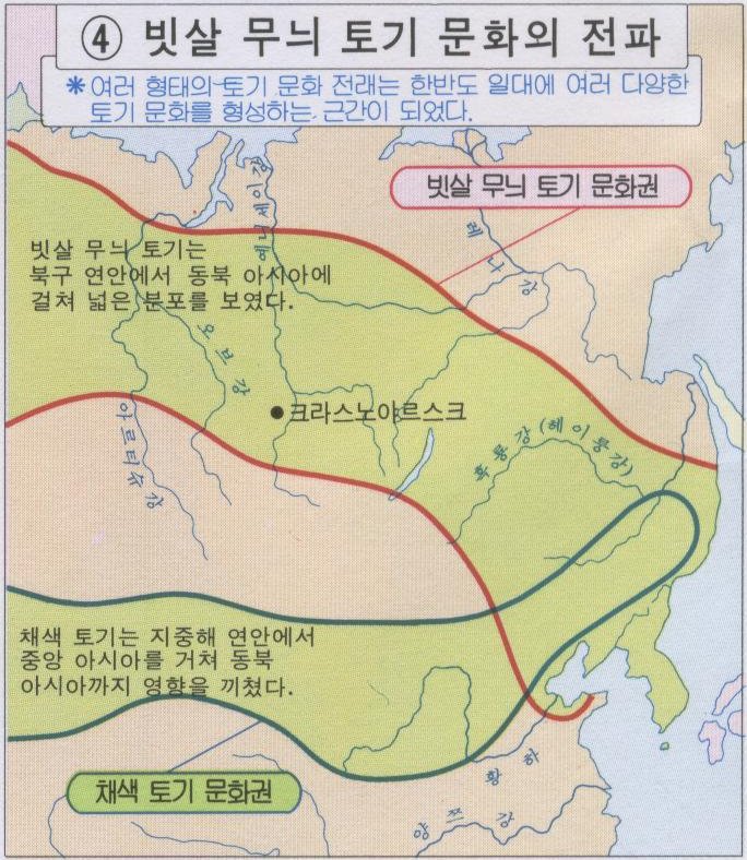 한반도 주변의 원시시대의 다양한 토기문화 전파 (빗살무늬, 채색토기) bdmapkor