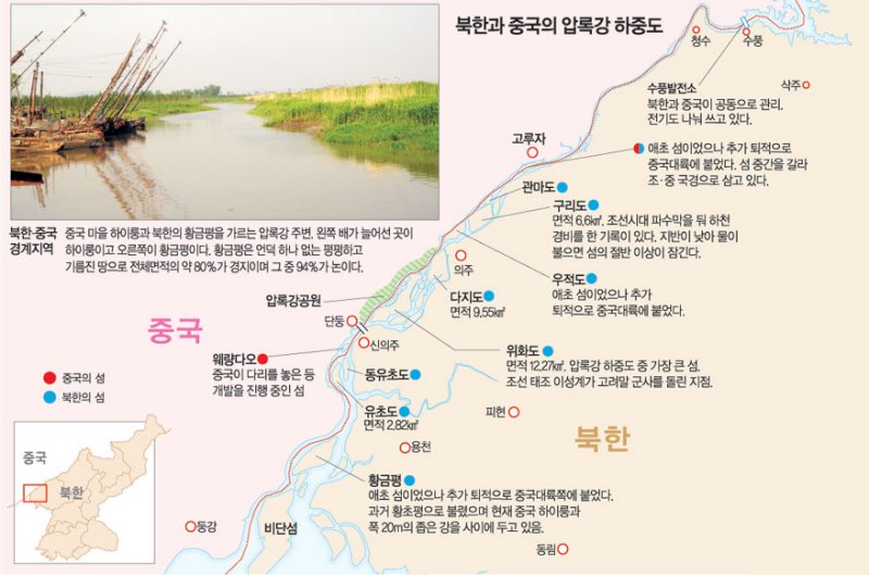 ▼ 북한과 중국 사이의 압록강 섬들