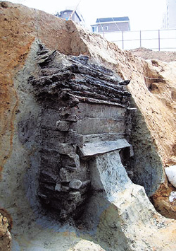 [사진설명] 서울 송파구 풍납동 풍납토성에서 발굴된 5세기경 축조된 것으로 추정되는 한성백제시대의 목조우물 옆모습. -사진제공 문화재청