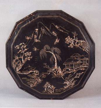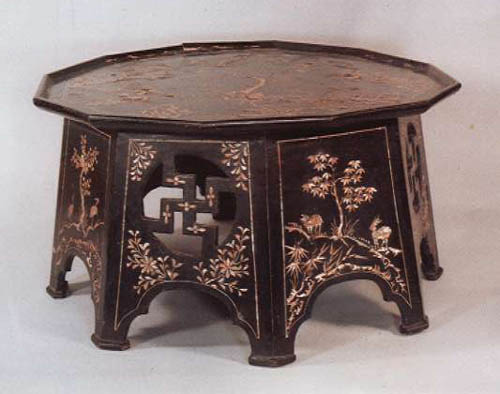 이 나전상은 조선시대 후기의 것이다. 상반이 12각이고 판자로 된 다리가 있는 번상이다. 번상을 일명 "공고상"이라고도 하는데, 조선시대 관리가 "번"(당직근무)을 설 때 차려가는 밥상의 의미이다. 상반에는 산, 집, 인물을, 각 다리면에는 여러 가지 꽃과 나무를 나전장식하고 옻칠한 것이다. 상다리는 완자무늬를 뚫어새겼다. 화려하면서도 균형이 잘 잡힌 밥상이다. (높이 32cm)
