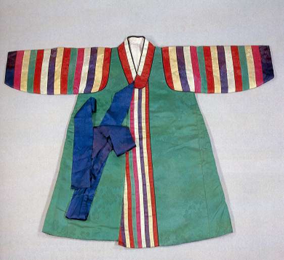 이 남자어린이색동두루마기는 조선시대의 것이다. (길이 58.6cm)