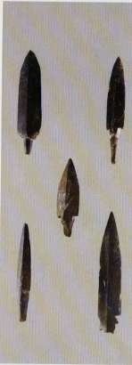 이 석제 활촉(석촉)은 청동기시대의 금탄리 유적 3문화층에서 나왔다. (가운데 길이 4.5cm)