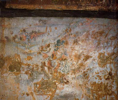 안칸 네 벽에는 아래부분에 사신을, 윗부분에 해와 달, 신선을 그렸다. 신선들은 모두 용이나 봉황새를 타고 금분과 채색으로 현란하게 장식된 꽃과 구름으로 가득 찬 신비로은 세계로 날아간다.