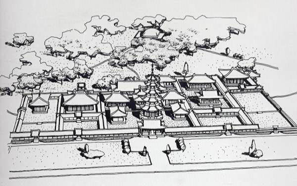 중심구역의 맨 뒤 산 밑에 있는 집터는 동서 16m, 남북 11.8m로서 그리 크지 않지만 집 둘레에 두 줄로 기둥을 세워 회랑을 두르고 집과 회랑 사이 통로는 벽돌로 포장하였다. 주춧돌은 네모나게 혹은 둥글게 다듬어 썼고 암반에 주추를 돋친 것도 있다. 집안에는 외곬의 온돌을 놓았다. 집과 그 뒤 언덕 사이의 돌로 정교하게 쌓은 도랑에는 돌다리를 놓아 서쪽의 정원을 거쳐 왕릉과 통하게 되어 있다.