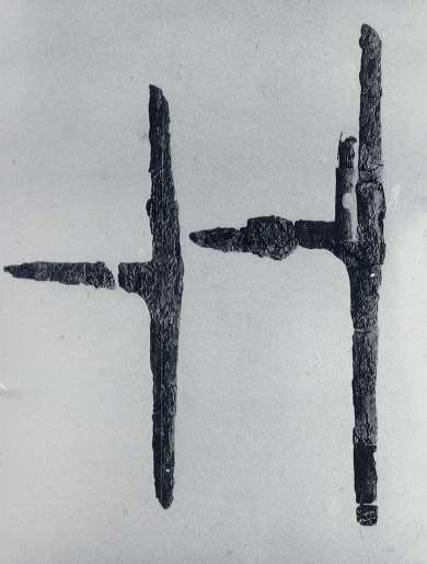 이 쇠가지창(鐵戟)은 1세기 초의 귀틀무덤인 석암리9호 무덤에서 나왔다. (오른쪽 길이 27.5cm)
