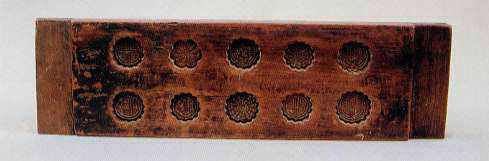 이 다식판은 조선시대 후기의 것으로 다식을 박아내는 틀이다. 다식은 녹말, 송화가루, 승검초가루, 황밤가루, 잣가루 등을 꿀이나 물엿에 반죽하여 다식판에 찍어낸 음식이다. 다식판은 배나무, 박달나무, 대추나무, 참나무와 같이 단단한 나무로 만들었다. 다식판은 같은 너비와 길이로 된 두 쪽이 한 조가 되는데 한쪽 판에는 여러 가지 모양의 홈을 뚫고, 다른 쪽 판에는 그 윗홈에 들어 맞을 꽃무늬를 비롯한 여러 가지 무늬가 조각된 봉이 있다. 다식판에는 다식을 하나씩 찍어내는 것과 한꺼번에 여러 개씩 찍어내는 것이 있는데, 대체로 후자가 많이 쓰였다. (길이 42cm)