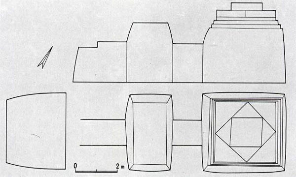 안칸은 서벽에 붙은 중심 안길로 양쪽 벽을 곧게 쌓아 올리고 한 장의 큰 판돌을 덮었다. 앞칸은 장방형인데 천장은 평천장에 가깝다. 안칸은 사방의 길이가 거의 비슷한 방형이고 천장은 평행삼각고임이다. 안칸의 바닥은 앞칸보다 10cm정도 높다. 안길은 길이 2.6m, 폭 1.2m, 높이 1.82m이고, 앞칸은 길이 1.87~1.88m, 폭 3.5m, 높이 2.8m이며, 안칸은 길이 3.7m, 폭 3.6m, 높이 3.6m이다.