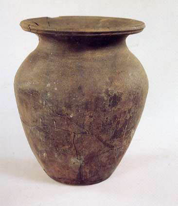 이 나팔형단지는 고구려(4세기 말~5세기 전반기)의 지경동 1호무덤 동쪽 감에서 출토된 세 개의 단지 가운데 한 점이다. (높이 18cm)