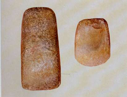 이 도끼는 동북지방에서 알려진 대표적 신석기시대 유적의 하나인 농포리유적에서 출토되었다. (큰 것 길이 9.3cm)