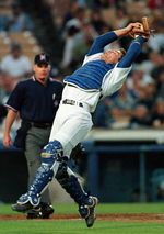 Los Angeles Dodgers catcher Todd Hundley nearly falls backward while catching a foul ball hit by Houston Astros' Derek Bell during the third inning Tuesday, May 18, 1999, at Dodger Stadium in Los Angeles. In the background is home plate umpire Brian Gibbons. (AP Photo/Kevin Karzin) Hampton was denied his fifth straight win, but pitched well. He allowed one run and seven hits over 7 1/3 innings, walking five and striking out five. In his last five starts, the lefthander has surrendered just five earned runs and 23 hits in 38 1/3 innings. updated at Thu May 20 23:18:41 1999 PT = Yahoo
