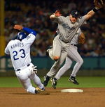Los Angeles Dodgers' Eric Karros is safe on a steal of second as Houston Astros' Craig Biggio reaches for an overthrown ball during the sixth inning Thursday night, May 20, 1999, in Los Angeles. Karros was later called out due to batter interference by the Dodgers' Devon White during the steal. (AP Photo/Mark J. Terrill) The Astros snapped a 1-1 tie in the ninth against reliever Alan Mills. Everett led off with a walk, stole second and went to third on rookie catcher Angel Pena's throwing error. Everett raced home on Mills' wild pitch. Wagner, who had not allowed a homer in 15 1/3 innings, blew his first save in 12 chances in the bottom of the ninth when the light-hitting Cromer launched a 2-2 pitch over the left-field wall for his first homer. "That was sitting on a tee for him," Wagner said of his pitch to Cromer. "I wanted to come inside on him but it was right down the middle." The Astros got on the board in the second against starter Chan Ho Park when Everett homered into the second deck just inside the right-field foul pole. It was only the sixth home run to reach the second deck at Dodger Stadium. Park gave Los Angeles solid outing, allowing just Everett's homer and five hits over seven innings. He walked two and struck out six. Houston starter Mike Hampton kept the Dodgers off the board until the seventh. Mark Grudzielanek led off with a single, took second on Pena's bunt and continued to third when Hampton threw wildly to first. Young singled in the tying run one out later.