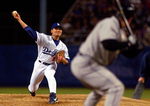 Los Angeles Dodgers pitcher Chan Ho Park throws to Houston Astros' Jeff Bagwell during the fifth inning Thursday night, May 20, 1999, in Los Angeles. (AP Photo/Mark J. Terrill) ¹ÚÂùÈ£´Â 21ÀÏ(ÀÌÇÏ Çѱ¹½Ã°£) ·Î½º¾ØÁ©·¹½º ´ÙÀú½ºÅ¸µð¿ò¿¡¼ ¹ú¾îÁø '99¹Ì±¹ÇÁ·Î¾ß±¸ ÈÞ½ºÅÏ ¾Ö½ºÆ®·Î½º¿ÍÀÇ È¨°æ±â¿¡¼ ¼±¹ß 7ÀÌ´×µ¿¾È 28ŸÀÚ¸¦ ¸Â¾Æ 5¾ÈŸ2º¼³Ý¿¡ 1Á¡À» ³»ÁÖ¸ç È£ÅõÇßÀ¸³ª Ÿ¼±ÀÇ µµ¿òÀ» ¹ÞÁö ¸øÇØ ½ÃÁð 4½Â¿¡ ½ÇÆÐÇß´Ù. ¿Ã½ÃÁð 3½Â3ÆÐ¸¦ ±â·ÏÇϰí ÀÖ´Â ¹ÚÂùÈ£´Â 0-1·Î µÚÁø 7ȸ¸» Ÿ¼®¶§ Æ®·¹´Ï´ÙµåÇã¹Ùµå·Î ±³Ã¼µÈ µÚ 2»ç 2·ç¿¡¼ ÅÍÁø ¿¡¸¯ ¿µÀÇ Àû½ÃŸ·Î ÆÐÀüÀ» ¸éÇß´Ù. ÃÑÅõ±¸¼ö 94°³Áß ½ºÆ®¶óÀÌÅ©´Â 58°³, ¹æ¾îÀ²Àº 5.32¿¡¼ 4.78·Î ³·¾ÆÁ³´Ù. ½½·³ÇÁ Å»Ãâ°ú µ¿½Ã¿¡ ½Â¸®¸¦ ³ë¸®´ø ¹ÚÂùÈ£¿¡°Ô´Â ¾Æ½±±â¸¸ ÇÑ ÇÑÆÇÀ̾ú´Ù. ´å»õÀü ¼¼ÀÎÆ®·çÀ̽º Ä«µð³Î½ºÀü¿¡¼ 5½ÇÁ¡À¸·Î ÆÐÀüÅõ¼ö°¡ µÆ´ø ¹ÚÂùÈ£´ÂÆ÷¼ö°¡ Åäµå Çåµé¸®¿¡¼ ¾ØÁ© ÇdzķΠ±³Ã¼µÈ À̳¯ ÁÖ¹«±âÀÎ Á÷±¸¿Í ³«Â÷ Å« Ä¿ºê¸¦¼¯¾î»ïÁø 6°³¸¦ »Ì¾Æ³»´Â µî Àß ´øÁ³´Ù. 1ȸ ÈÞ½ºÅÏÀÇ ¼±µÎŸÀÚ Å©·¹ÀÌ±× ºñÁö¿À¿¡°Ô Ãʱ¸¿¡ 2·çŸ¸¦ ¸ÂÀº µÚ 3ŸÀÚ¸¦¹üŸ·Î ó¸®Çß°í 4ȸ 1»ç ¸¸·ç À§±â¿¡¼µµ »ó´ëÅõ¼ö ¸¶ÀÌÅ© ÇÜÆ°¿¡°Ô¼ º´»ìŸ¸¦À¯µµÇÏ´Â Ä§ÂøÇÔµµ º¸¿´´Ù. À̳¯ ¸Ó¸®¿Í ¼ö¿°À» ±ð°í ³ª¿Â ¹ÚÂùÈ£´Â ƯÈ÷ À¯µ¶ ¾àÇÑ 6ȸ¿¡ »ïÁø 2°³¸¦»Ì°í7ȸ¸¦ 3ÀÚ ¹üÅð·Î ¸·¾Æ ÇÑ°á ´Þ¶óÁø ¸ð½ÀÀ» º¸¿´´Ù. ±×·¯³ª ¹ÚÂùÈ£´Â 2ȸ ¼±µÎŸÀÚ Ä® ¿¡¹ö·¿°ú 7±¸±îÁö °¡´Â °ø¹æ ³¡¿¡ ÅÁ÷ÇÑ ¿ì¿ùȨ·±À» Çã¿ëÇÑ µÚ Æú ¹ÙÄÚ¿¡°Ô ÁÂÁß°£ 2·çŸ¸¦ ¸Â´Â µî ÁŸÀÚ Â¡Å©½º¸¦ ´Ù½Ã ³ëÃâÇØ ¾Æ½¬¿ü´Ù. ¹ÚÂùÈ£´Â 27ÀÏ ¿ÀÀü 8½Ã ½Å½Ã³»Æ¼ ·¹Áî¿ÍÀÇ ¿øÁ¤°æ±â¿¡ µîÆÇÇÒ ¿¹Á¤ÀÌ´Ù. ÇÑÆí ´ÙÀú½º´Â ÈÞ½ºÅÏ¿¡ ¿¬Àå ³¡¿¡ 3-4·Î ÆÐÇß´Ù.