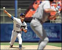 FLUSHING, NEW YORK (TICKER) -- Rookie Octavio Dotel helped make Todd Hundley's return to Shea Stadium a forgettable one, recording a career-high 10 strikeouts in seven innings, as the red-hot New York Mets edged the Los Angeles Dodgers, 2-1. Dotel (4-1) needed only 11 pitches to fan Hundley in his first three at-bats. The 23-year-old righthander limited Los Angeles to three hits and two walks, balking home the Dodgers' only run in the third inning. Dennis Cook and Turk Wendell combined to pitch the eighth before Armando Benitez struck out the side around a hit and a walk in the ninth for his 12th save in 17 chances. Hundley spent his first nine seasons with New York and was a fan favorite before the Mets traded him to Los Angeles as part of a three-team deal last December. The former All-Star catcher was greeted warmly by the crowd of 43,825 in his first plate appearance but made contact only twice all night before walking on four pitches in the ninth.
