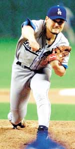Los Angeles Dodgers starting pitcher Chan Ho Park reacts to giving up a solo home run in the sixth inning to Houston Astros' Craig Biggio Saturday, Oct. 2, 1999, in Houston. The Astros won, 3-0, to take the lead in the National League Central Division race. (AP Photo/Pat Sullivan) ºñ·Î ¿¬±âµÅ Ä¡·¯Áø 4¿ù13ÀÏ ¾Ö¸®Á¶³ªÀü¿¡¼ µ¥ºß ù ¸¸·çȨ·±À» ¸Â°í ù ÆÐ¸¦ ´çÇϸç Á¶ÁüÀ» º¸ÀÎ ¹ÚÂùÈ£ÀÇ ºÒ¿îÀº 4¿ù24ÀÏ ¼¼ÀÎÆ®·çÀ̽ºÀü¿¡¼ ŸƼ½º¿¡°Ô ¸ÞÀÌÀú¸®±× »ç»ó ÃÊÀ¯ÀÇ ÇÑ ÀÌ´× ÇÑ Å¸ÀÚ ¿¬Å¸¼® ¸¸·çȨ·±À¸·Î À̾îÁ³´Ù. ±×ÀÇ ºÒ¿îÀº ¼º»ç Á÷Àü±îÁö °¬´ø Àå±â°è¾àÇù»óÀÌ °á·ÄµÇ°í,6¿ù6ÀÏ ¾Ö³ÊÇÏÀÓÀü¿¡¼ ÆÀ º§Ã³¿Í ³Åõ±ØÀ» ¹úÀ̸ç 7°æ±â ÃâÀå Á¤ÁöÀÇ Áß¡°è¸¦ ´çÇÏ¸é¼ ÀýÁ¤À» ÀÌ·ð´Ù. ÀÌÈÄ ÇÑ ´Þ¿© µ¿¾È µ¥ºß ÈÄ ÀÚ½ÅÀÇ ÃÖ´Ù¿¬ÆÐ ŸÀ̱â·ÏÀÎ 4¿¬ÆÐ¸¦ ´çÇϸç Çã¿ìÀû°Å¸° ¹ÚÂùÈ£´Â Àü¹Ý±â ¸¶Áö¸· ÄݷζóµµÀü°ú ÈĹݱ⠼Àü ¾Ö³ÊÇÏÀÓÀüÀ» °ÅǪ ÀÌ°Ü ¹ÝÀüÀÇ ±âƲÀ» ¸¶·ÃÇϴ°¡ ÇßÀ¸³ª ¶Ç´Ù½Ã ÇÑ´Þ µ¿¾È 3¿¬ÆÐ¿¡ ºüÁ³´Ù. °á±¹ ³¡ÀÌ ¾È º¸ÀÌ´Â ´Ë¿¡¼ Å»ÃâÇϱâ À§ÇÑ ¹ÚÂùÈ£ÀÇ ¸öºÎ¸²Àº 8¿ù19ÀÏ ¾Æ¹«µµ ¿¹»óÇÏÁö ¸øÇÑ ¡®»õº® »è¹ß¡¯À̶õ ±ô¦¼î·Î ¿¬ÃâµÆ´Ù. ²¿ÀÏ ´ë·Î ²¿ÀÎ ¹ÚÂùÈ£ÀÇ ¿îÀº ÀÌ ¶§ºÎÅÍ °ÅÁþ¸»Ã³·³ Ç®¸®±â ½ÃÀÛÇß´Ù. 8¿ù23ÀÏ Çʶóµ¨ÇǾÆÀüºÎÅÍ 9¿ù29ÀÏ »÷ÇÁ¶õ½Ã½ºÄÚÀü±îÁö ÆÄÁ×ÀÇ 7¿¬½ÂÀ» ´Þ¸° °Í. ¾î·Á¿ï °ÍÀ¸·Î¸¸ º¸¿´´ø 3³â ¿¬¼Ó 10½ÂÀ» µ¹ÆÄÇßÀ½Àº ¹°·ÐÀÌ°í ¸·ÆÇÀ¸·Î °¥¼ö·Ï ÄÚ¸®¾È Ư±ÞÀÇ À§¿ëÀ» µÇã¾Æ°¬´Ù. ¹ÚÂùÈ£´Â 3ÀÏ ÈÞ½ºÅÏÀü¿¡¼ÀÇ ÄèÅõ·Î ³»³â ½ÃÁð¿¡ ´ëÇÑ Àü¸ÁÀ» ¹à°Ô ÇÏ¸ç ¿Ã½ÃÁðÀ» ¸¶°¨Çß´Ù. Á¸½¼ °¨µ¶ÀÌ ¡°´ÙÀú½ºÀÇ NO.1Åõ¼ö·Î ¼Õ»öÀÌ ¾ø´Â ¸ð½ÀÀ» º¸¿©Áá´Ù¡±°í ±ØÂùÇÒ ¸¸Å ¿¾ ¸ð½ÀÀ» ¶Ç·ÇÀÌ º¸¿©Áá´Ù. ¡®ºñ¿Â µÚ¿¡ ¶¥ÀÌ ´õ ±»´Â´Ù¡¯´Â ¸»Ã³·³ ³»³â ½ÃÁð¿¡´Â ¹ÚÂùÈ£ÀÇ »õ·Î¿î