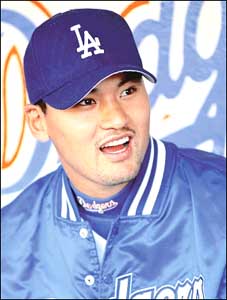 Brian Cooper (2-1) started for Anaheim and was hammered for six runs and eight hits in seven innings. "I made too many mistakes with all my pitches," Cooper said. "It's tough, we have a pretty potent offense but to be down five runs after three innings, that is a tough hill to climb. That's the last thing you want to do as a starter -- give up a three-spot in the first inning." The Dodgers took advantage of an error by newly acquired Anaheim shortstop Kevin Stocker to score three runs in the first inning. Todd Hollandsworth, who left the game in the ninth with a strained right hamstring, opened the contest with a grounder that Stocker booted. Mark Grudzielanek followed with a single before Sheffield lined Cooper's next offering down the left-field line for his 16th homer. "I didn't think there was any way it would stay fair but it came back in," Sheffield said. After the Angels threatened in their half of the first, Hollandsworth put the Dodgers on top 4-0 with an RBI single in the second. Sheffield's 17th homer, with one out in the third, was a blast to left that traveled an estimated 425 feet. The Angels got a run in the third on a run-scoring single by Vaughn and threatened in the fourth before a double-play grounder by Matt Walbeck short-circuited a potential rally. Shawn Green's RBI double in the fifth pushed the Los Angeles lead to 6-1 but it appeared that Park was finally out of luck in the bottom of the inning. Darin Erstad and Stocker opened the inning with singles but Park retired Vaughn on a harmless popout before striking out Tim Salmon and Garret Anderson. "I was unhappy to get in that situation but I told myself to forget about it and focus on one pitch at a time," said Park, who improved to 2-0 all-time against Anaheim. "I was upset about that inning but otherwise I was pleased with the way I pitched today." "Chan Ho Park was the difference," Angels manager Mike Scioscia said. "Today's game was a lot closer than it looked because we had a lot of opportunities. But you have give Park credit, he made some great pitches to Vaughn, Salmon and Anderson to get out of that inning. Obviously, it kept the momentum on their side." The Angels scored twice in the sixth, on an RBI double by rookie Adam Kennedy and a run-scoring single by Erstad, to draw within 6-3. But Los Angeles tacked on two runs in the eighth on Kreuter's two-run single. Anaheim attempted to rally with two outs in the ninth as Anderson and Troy Glaus singled but Osuna came on to induce Scott Spiezio to bounce to shortstop. ´ÙÀú½º Åõ¼ö¼ºÀûÇ¥ 6/3 ÇöÀç PLAYER ------ W- L- S - ERA- G- GS CG SHO- IP-- H-- R-- ER