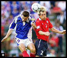 Norway which had stunned Spain 1-0 to open its tournament in the best possible way was itself left stunned from Milosevic's early goal. It normally thrives in a high-paced physical game, but in the humid hot conditions Sunday, Norway long looked lame, allowing the individual skills of the Yugoslav stars to take charge. Yugoslavia, frustrated so long in its 3-3 draw with Slovenia, could not believe its luck. Even veteran playmaker Dragan Stojkovic, 35, who plies his trade with Grampus Eight in Japan, outran many Norwegians at times. In the 26th minute, Predrag Mijatovic showed his class, taking a pass with his back to goal, turning early and unleashing a beautiful left-foot shot from some 20 meters which took a stunning save from Myhre. In an increasingly open game, the Yugoslav defense started losing its grip on Tore Andre Flo and Ole Gunnar Solskjaer. Chelsea's Flo worked himself free and hit a curler from 20 meters but Ivica Kralj was equal to the task. Immediately after half time Yugoslavia went looking for the goal to make victory certain. Vladimir Jugovic of Inter Milan came close with a thunderous shot which was well saved and Mijatovic almost added a second in the 50th minute. At this stage, it was Myhre who kept Norway in touch. Gradually however, the game degenerated into an ill-tempered affair with crunching tackles and clashes of the head. Yellow cards came flying, with six bookings in total. Norway finally started relying on its superior physical conditioning to launch a final onslaught. Substitute John Carew came closest in the 90th minute but his tap past Kralj went just wide. Lineups: Norway - Thomas Myhre; Andre Bergdolmo, Bjorn Otto Bragstad, Vegard Heggem, Dan Eggen; Erik Mykland, Bent Skammelsrud, Eirik Bakke (75, Roar Strand); Tore Andre Flo, Ole Gunnar Solskjaer, Steffen Iversen (70, John Carew). Yugoslavia - Ivica Kralj; Goran Djorovic, Miroslav Djukic, Slobodan Komljenovic, Nisa Saveljic; Dragan Stojkovic (84, Albert Nadj), Vladimir Jugovic, Slavisa Jokanovic, Ljubinko Drulovic; Predrag Mijatovic (87, Mateja Kezman), Savo Milosevic. Referee: Hugh Dallas, Scotland