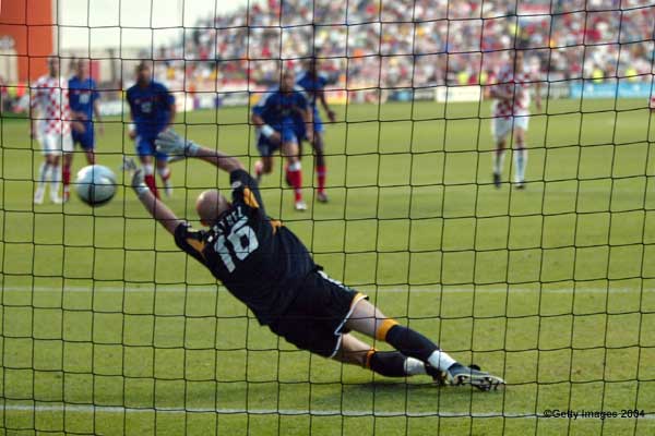 Croatia meanwhile must beat England on Sunday to advance. After a quiet opening period defender Igor Tudor suffered a cruel dose of ill luck when he deflected in a Zidane freekick from some 25 yards out to leave Croatian keeper Tomislav Butina groping at thin air as the ball ricocheted past him. The second half was barely two minutes old when Silvestre clattered into Dovani Rosso to hand Rapaic the chance to level from the spot.