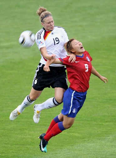 In heavy rain in Bochum, the South Koreans made a good start and attacked with purpose. Germany were the first to threaten the goal however with Popp¡¯s sprint down the left wing ending with a Sylvia Arnold header which was saved by Moon So-Ri. South Korea responded with a Jung Hae-In volley following a cross from Jeong Yeonga, but again the goalkeeper was not stretched in making the stop. Shortly after a drive from Germany playmaker Dzsenifer Marozsan was only inches away from hitting the target. Germany¡¯s pressure told in the 13th minute. Tabea Kemme crossed from the left to the far post where right-winger Svenja Huth crept behind Jeong to score on the volley. It might have become two when a neat Marozsan pass found Popp unmarked in front of Moon but the keeper was able to make the save. Down the left Arnold was shining for the hosts and her shot from just outside the area after 21 minutes travelled just wide. After that Kim Kulig¡¯s volley shot from a corner kick sailed over the bar. With the fans roaring them on, Germany made it 2-0 when Kulig¡¯s shot slipped through Moon¡¯s hands. The goalkeeper made amends soon after to deny Arnold after the winger had executed a wonderful turn to throw off her marker. It took Maren Meinert's team only five minutes after the break to make it 3-0. Again Arnold was the instigator as she dribbled into the area. Her shot was blocked but the ball squirted out to Popp who needed only one touch before placing the ball in the net. It had become a difficult struggle for the Asian team who were not used to conceding goals on this scale. And it got worse as Moon was again unable to hold on to a Kulig shot, the ball squirming over the line for 4-0. South Korea¡¯s star turn, midfielder Ji So-Yun, had been shackled up to now but just past the hour she unleashed a dangerous shot which Almuth Schult saved impressively. Ji had the bit between her teeth now and she pulled a goal back in that elusive style of hers, dribbling past three German defenders before skilfully directing her shot beyond the keeper. It didn¡¯t take long for Germany to restore their four-goal advantage.