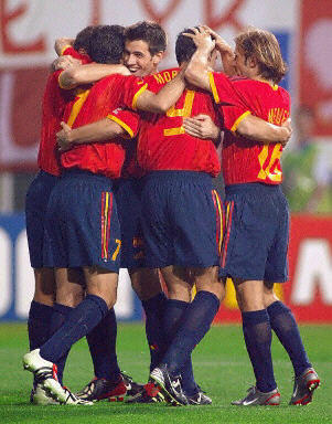 South Africa tried to come back when MacBeth Sibaya fired a shot from 20 metres that Spain goalkeeper Iker Casillas punched away (10¡¯). Mendieta nearly scored himself when he received a pass from Joaquin at the penalty spot, but Mendieta¡¯s low shot was cleared off the line by Aaron Mokoena (13¡¯). Fernando Morientes thought he had doubled Spain¡¯s lead when he knocked a header on goal from six metres, but Arendse dived to his right and reached behind him to bat the ball down and keep it from crossing the line (30¡¯). A minute later, instead of being down two goals, South Africa were level. Siyabonga Nomvethe headed a cross from the right toward the near post where Benedict McCarthy left his feet to volley past Casillas (1:1, 31¡¯). Just before the half-time interval, Mendieta was presented with a free kick just outside the area. From the left side, his swerving right-footer left Arendse stuck in his tracks, as the ball curled just inside the back post (1:2, 46¡¯+). South Africa equalised again early in the second half when Lucas Radebe poked in a header at the back post after Spain¡¯s Romero sent an errant flick pass behind him from a corner kick (2:2, 53¡¯). But within minutes, Raul had Spain back in the lead for a third time. Joaquin lofted a perfect cross into the area where Raul rose above his defender and nodded the ball to the right of Arendse (2:3, 56¡¯). Ivan Helguera had a chance to give Spain some breathing room, but his header from six metres went wide (63¡¯). Then it was McCarthy trying to pull Bafana Bafana back again with a 20-metre shot that went past the far post (66¡¯). Just after entering the match, Albert Luque came close to providing Spain¡¯s insurance. Raul fed Luque inside the area, and he took a touch before sending a right-foot shot that forced another diving save from Arendse (79¡¯). Then Luis Enrique came close after his entrance when he ran onto a cross that slipped through from the left side, but he couldn¡¯t redirect the ball on net (83¡¯). In the end, South Africa desperately pushed forward,
