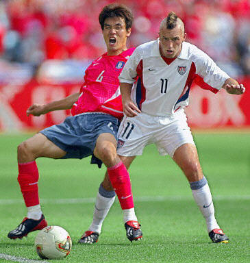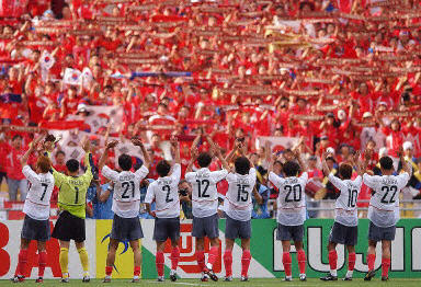 Korea had the first chance when Hwang Sun-Hong played a ball across the penalty area to Seol Ki-Hyeon, but he failed to take advantage of the glorious opportunity as his volley from eight metres went well over the crossbar (6¡¯). The co-hosts again came close soon after when Kim Nam-Il fired a 40-metre shot that forced U.S. goalkeeper Brad Friedel to make a difficult save (9¡¯). The Americans¡¯ first chance fell to Landon Donovan, but his shot from 15 metres off a bouncing cross from the left went wide of the right post (21¡¯). On their second chance, the U.S. made no mistake. John O¡¯Brien lofted a pass from midfield into Clint Mathis at the edge of the area, and the striker put his left-foot shot into the lower-left corner of the net (0:1, 24¡¯). The goal marked the second game in a row in which the U.S. took an early lead with a goal from a player in his first final-phase match. Korea had their chance to draw level when Jeff Agoos ? who committed an own-goal in the win over Portugal ? pulled down Hwang Sun-Hong in the penalty area. However, Friedel made a spectacular save as he dived to his right to deny Lee Eul-Yong¡¯s spot-kick, and though the rebound spilled out dangerously in front of goal, Kim Nam-Il sent his follow up wide of the left post. Korea again almost had the equaliser shortly after the interval as Seol Ki-Hyeon had a gem of a chance when he got loose behind the defence, but Friedel made a wonderful save with his right hand (47¡¯). Korea maintained consistent pressure for long stretches of time. Several times it seemed that they were on the verge of a goal, only for an American defender to save the day with a desperation tackle. By the hour mark, the U.S. were playing with every man behind the ball, content to settle for counter-attacks. Just after coming on as a substitute, Choi Yong-Soo had a great look at goal when he received a ball in space in the left side of the penalty area, but he drove his shot right at the steady Friedel (71¡¯). Then Kim Nam-Il tried his luck with a curling 25-metre shot that went high and wide (75¡¯). With Korea applying so much pressure, the equaliser was bound to come. Lee Eul-Yong served a free kick from midfield into the penalty area, and Ahn Jung-Hwan rose up to flick his header into the right-side netting (1:1, 78¡¯). Korea had a look at the would-be winner with the net wide open. Lee Eul-Yong dribbled along the end-line, waited for Friedel to come out of his goal and pulled the ball back to Choi Yong-Soo, who inexplicably chipped the ball over the goal. It would be the last good chance for either team, as each side was forced to settle for a single point. |