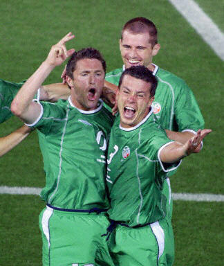 Ireland got an early Robbie Keane strike and second half goals from Gary Breen and Damien Duff to hold off Saudi Arabia and finish second in Group E. The result, along with Germany's defeat of Cameroon, means that the Germans and the Irish are through to the second round. For the first time in their history, Ireland scored more than a single goal in a FIFA World Cup¢â finals match. They will take on the Group B winner in Suwon, Korea feeling confident after drawing twice and winning their third match. The Saudis go home eliminated, having taken zero points and scoring no goals. Ireland wasted no time jumping into the lead. Matt Holland served a looping cross from the left to an unmarked Robbie Keane, who was standing near the penalty spot, and the Leeds United man struck his volley past Saudi Arabia goalkeeper Mohammed Al Deayea (0:1, 7¡¯). Although the wet conditions limited the teams¡¯ technical play, Ireland maintained some pressure in the moments following the goal, but the run of play soon evened out. Saudi Arabia began to apply some pressure of their own, led by forward Al Hasan Al Yami¡¯s enterprising runs, including one in which he worked his way through a crowd of defenders only to be dispossessed just before he could get a shot away. Ireland, meanwhile, continued to look to Keane and Kevin Kilbane in the attack, but the Saudi Arabian defence held firm, intent on not suffering a similar embarrassment to what they experienced in their 8-0 thrashing at the hands of Germany. Saudi Arabia¡¯s best chance came when Mohammed Al Jahani was sprung loose on goal, but he sent his shot right at Ireland goalkeeper Shay Given (42¡¯). Robbie Keane almost opened the second half as he did the first when he swivelled and shot from 12 metres, but this time his shot was wide to the right (49¡¯) Ireland needed a second goal to be certain of qualification for the second round, and they got it from Gary Breen, who scored with a stabbing volley from seven metres after a cross from the left (0:2, 62¡¯). Ireland now held a lead that, if it stood up, would guarantee them a berth in the round of 16. Ireland almost scored their third goal when half-time substitute Niall Quinn went close with his effort from a step inside the area after receiving a cross from Gary Kelly (63¡¯). Minutes later, it was again Quinn who had a chance, this time sending his volley well wide of the mark (71¡¯). Shortly after, Saudi Arabia had one of their best chances of the match. Al Yami sent a header toward the top corner of the Ireland goal, but Given did well to save it (75). Ireland put an exclamation point on the victory