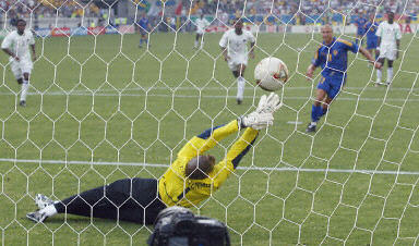 With Nigeria teetering on the brink of elimination, Sweden came out strong looking for an early goal to erase any thoughts Nigeria may have had about staying alive in the Group of Death. Their early pressure resulted in two good chances and three corner kicks in the opening four minutes. Nigeria withstood the early onslaught, however, and were soon controlling the midfield. Niclas Alexandersson fouled Ifeanyi Udeze on the left side and the Nigerians were given their first good opportunity. But Jay Jay Okocha¡¯s hard shot went high (15¡¯). After Freddie Ljungberg made a courageous run through a pair of defenders and into the penalty area to earn a corner, Johan Mjallby¡¯s near-post header was saved off the line at the back post by Nigerian defender Justice Christopher (23¡¯). On the other end, Nigeria¡¯s Julius Aghahowa opened the scoring with a flick header just inside the far post from Joseph Yobo¡¯s right-wing cross (0:1, 27¡¯). Aghahowa¡¯s celebration was as exciting as the goal itself, as the 20-year-old forward strung together six handsprings and finished with a full flip near the corner flag. Larsson levelled the score with a good individual effort when he managed to keep himself onside to receive Ljungberg¡¯s through pass and then toe-poked the ball past Ike Shorunmu (1:1, 36¡¯). With the pace still back and forth, Nigeria tried to answer back. When it seemed Okocha¡¯s shot from the left side would go wanting, Sweden defender Teddy Lucic¡¯s clearing attempt was blocked by his own man, Mjallby, and crashed off the post (40¡¯). A glimpse at the importance of the match for Nigeria was evident when defender Taribo West, with blood splattered on his jersey, was stitched up just beyond the touch-line after suffering a cut above his left eye early in the second half. Minutes later, West was back on the pitch, in time to slow down a Sweden counter-attack. But when the ball was played to an unmarked Larsson near the penalty spot, Udeze had little choice but to pull down the Celtic star. Larsson¡¯s powerful penalty went through the outstretched hands of Shorunmu and Sweden were ahead (2:1, 62¡¯). West, clearly visible now with a bandage circling his head, was spotted at the edge of the goal box from the left side, but his downward header bounced wide of the near post (72¡¯). John Utaka and Yobo then went close within minutes of each other. First Utaka was sent into space on the left side. After rounding goalkeeper Magnus Hedman, his shot was cleared off the line by Mjallby (82¡¯). Then from the top of the area, Yobo made a move to his left and ripped a low shot off the post to Hedman¡¯s right (83¡¯). Arsenal star Nwankwo Kanu, who entered the game