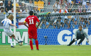One of the better opportunities of the first half came from a Japan free kick, but Kazuyuki Toda¡¯s long-range shot went well over the crossbar (19¡¯). Minutes later, Gert Verheyen provided the first real chance for Belgium when he nodded a header just wide of the post after receiving a cross from Jacky Peeters on the right side (23¡¯). On the ensuing goal kick, the ball was flicked into space for Takayuki Suzuki, but he was run off the ball by a defender and the near-threat ended with the ball trickling out of bounds for a Belgium goal kick (23¡¯). With Japan unable to create any serious danger, the Belgians started to form their attack. Seigo Narazaki made one of the best saves in the early stages of the tournament when he dived high to bat away Marc Wilmots¡¯ header from 10 metres (29¡¯). Belgium had another opportunity when a blocked shot softly rolled out to Bart Goor just outside the penalty area, but his left-footer was driven inches wide of the top-left corner (36¡¯). From there, the hosts picked up the pressure and the speed of the match increased with both teams racing back and forth in search of the go-ahead goal before half-time. A poor clearance resulted in the first goal of the match, but it didn¡¯t take away the beauty of Wilmots¡¯ opening strike. A Belgium free kick was softly headed to the top of the area, where Eric Van Meir lobbed the ball back into the box. Wilmots found himself in space eight metres out and ripped a bicycle kick by Narazaki¡¯s right side (0:1, 57¡¯). The goal silenced the crowd at Saitama, but just two minutes later, they were back on their feet. Suzuki equalized with a commendable solo effort of his own after he tracked down a long pass out of midfield. He was able to lunge and get a toe to the ball, just flicking it past charging goalkeeper Geert De Vlieger and inside the near post (1:1, 59¡¯). Now playing with momentum on their side, Japan went ahead for the first time in their FIFA World Cup¢â finals history. Inamoto¡¯s speedy run on the left side brought him into the area with three Belgium defenders chasing him. The Arsenal midfielder took his time to place the ball out of the reach of De Vlieger and inside the far post from 12 metres (2:1, 67¡¯). But against the run of play, Belgium were able to pull level. With all players heading out of Japan¡¯s penalty area, Peter Van Der Heyden was the only one heading forward when the ball was played back in by Belgium. Van Der Heyden calmly lobbed the ball over the head of Narazaki (2:2, 75¡¯). Inamoto thought he had another go-ahead goal as