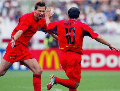 The Belgians initially took the lead in the early going through a perfect Johan Walem free-kick. But, when Vladimir Beschastnykh scored in the second half, the draw meant Russia were through on points. Sonck¡¯s header gave Belgium the lead and Wilmots scored his third goal of the tournament to confirm the victory even though Dmitri Sychev got a last-minute goal to send Belgian pulses racing. Match facts Needing three points, Belgium were off to the best possible start. Johan Walem scored a beautiful free kick from 20 metres when he curled his shot around the Russian wall and into the top-right corner (1:0, 7¡¯). Mbo Mpenza looked to put Belgium ahead by two goals when his turning volley from 18 metres was directed toward the far post, but Russia goalkeeper Ruslan Nigmatullin dived right to make the save (9¡¯). Knowing a loss would send them packing, the Russians had to find an equaliser. They began their hunt with a shot from Alexei Smertin that drifted wide (19¡¯) and a shot from Andrei Solomatin that was deflected over the by-line for a corner kick (20¡¯). Belgium looked for more when Marc Wilmots had a shot blocked, and after Mpenza tracked the ball down in the area, his shot was deflected out for a corner (27¡¯). The pace was end-to-end as the half drew to a close, with substitute Dmitri Sychev forcing a diving save from Belgium goalkeeper Geert De Vlieger (39¡¯) and Yves Vanderhaeghe unleashing an 18-metre drive straight at Nigmatullin (40¡¯). Following a Belgium corner kick, Gert Verheyen brought down a cross at the back post but sent his eight-metre shot well off the mark (44¡¯). Dmitry Khokhlov had a final chance for Russia as stoppage time approached, but his hopeful shot from the top of the penalty arc rolled wide (45¡¯). As quickly as Belgium had drawn first blood to begin the match, Russia were level in the second half. Khokhlov finished a fine run with a pass to Sychev, who broke into the penalty area only to have his shot saved by De Vlieger. Vladimir Beschastnykh followed the play and volleyed the rebound just beyond the desperate reach of a Belgium defender and into the unoccupied net (1:1, 52¡¯). A slow build up by Russia turned into a great chance to take the lead when Dmitry Alenichev fed Egor Titov, who had overlapped on the left side of the area. Titov laid a right-footed pass across the face of the goal, but Valery Karpin could not get a foot on the ball (74¡¯). When it looked as though Russia were about to secure their spot in the round of 16, Belgium took the lead through Wesley Sonck, who had replaced Mpenza in the 70th minute. Sonck headed past Nigmatullin from eight metres after Walem¡¯s corner kick (2:1, 78¡¯). Then Belgium placed a firm grasp on a spot in the second stage when Wilmots finished from 18 metres. Bart Goor fed Wilmots at the top of the area and his left-footed strike took a deflection from a Russia defender, leaving Nigmatullin wrong-footed and finding the right-side netting (3:1, 82¡¯). Sychev brought Russia back within a goal, however,