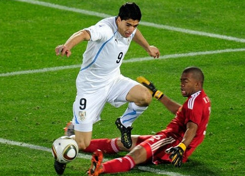 Diego Forlan silenced the crowd for the first time during South Africa 2010 with a wonder strike worthy of any stage, and was also on target from the spot as Uruguay took a step closer to the last 16 with a 3-0 win over the hosts. Alvaro Pereira sealed a comfortable victory for the South Americans with a stoppage-time tap-in. South Africa, who had not beaten Uruguay in their previous two meetings, headed into this game in Pretoria knowing the hopes of the Rainbow Nation rested upon their shoulders, with both sides having picked up a point in their opening outings in Group A. Carlos Alberto Parreira brought in Tsepo Masilela for Lucas Thwala in the hosts' starting line-up, while Uruguay opted to make two changes, with Edinson Cavani and Jorge Fucile coming in for Mauricio Victorino and Ignacio Gonzalez. Pretoria had been a lucky place for Bafana Bafana, who had not yet lost at the Loftus Versfeld Stadium, but it was Uruguay who started the brighter. In the 23rd minute, Luis Suarez teased his way past Bongani Khumalo before stinging the palms of Itumelenge Khune. It was a clear warning of what was to come and, within 60 seconds, the South Americans were ahead through Forlan. Khune had clearly not been expecting the Atletico Madrid forward to unleash a shot from 30 yards out, and stood rooted to the spot as his stunning drive, taking a slight deflection off the back of Aaron Mokoena, dipped over his head and into the back of the net.