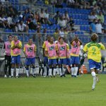 As the game wore on, Brazil's reluctance to settle for victory by a solitary penalty grew apparent and the lively Ernane was unlucky that one of three team-mates could not make a connection with his dangerous centre across the face of goal. Syria refused to give in without a fight and Mohammad al Hamwi almost created an opening out of nothing, twisting and turning to shake off his markers, then getting a decent shot in, but Brazil blocked his path to goal. Undaunted, al Hamwi came at Brazil and went even closer, cracking a drive in from 30 yards only to see it crash back off the crossbar. Despite an attempt by Fellype Gabriel to break the world record for the number of step-overs, there was little else to cheer the lively crowd in the closing stages and though Syria finished stronger, they could not find the equaliser. Syria lost 6-0 the last time they came up against the