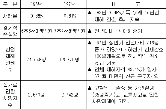 | ³ëµ¿ºÎ°¡ ÃÖ±Ù ¹ßÇ¥ÇÑ '97³â »ê¾÷ÀçÇØ Åë°è ºÐ¼® °á°ú¿¡ µû¸£¸é ÀçÇØÀ²ÀÌ