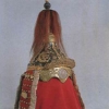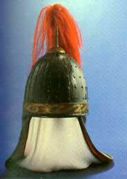 꼭대기에 여러 가지 장식을 하였는데 깃을 3-4개 꽂거나 그냥 털을 단 것은 일반 병사들의 투구이며, 쇠꼬쟁이를 세우고 그 위에 털장식을 한 것은 무관의 것이다. 이밖에 투구의 양쪽 위에 뿔같은 금속장식을 단 것도 있다. (앞뒤 길이 23cm)