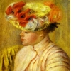 Young Woman Wearing a Hat with Flowers. (Jeune femme au chapeau de fleurs).