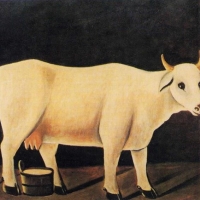 White Cow on a Black Background.