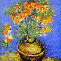 Imperial Crown Fritillaria in a Copper Vase.