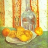 Still Life with Bottle and Lemons on a Plate. Spring